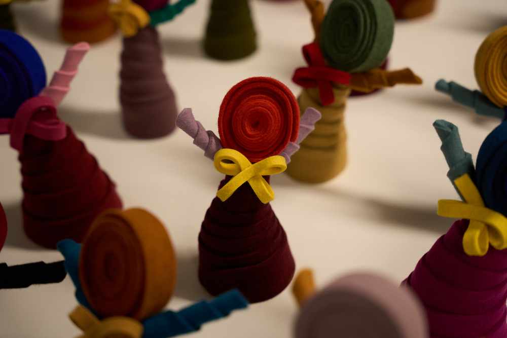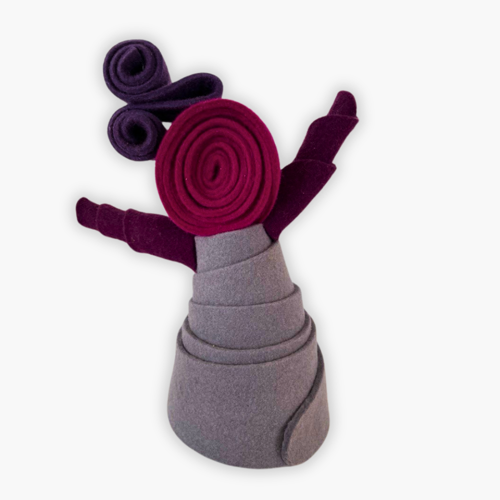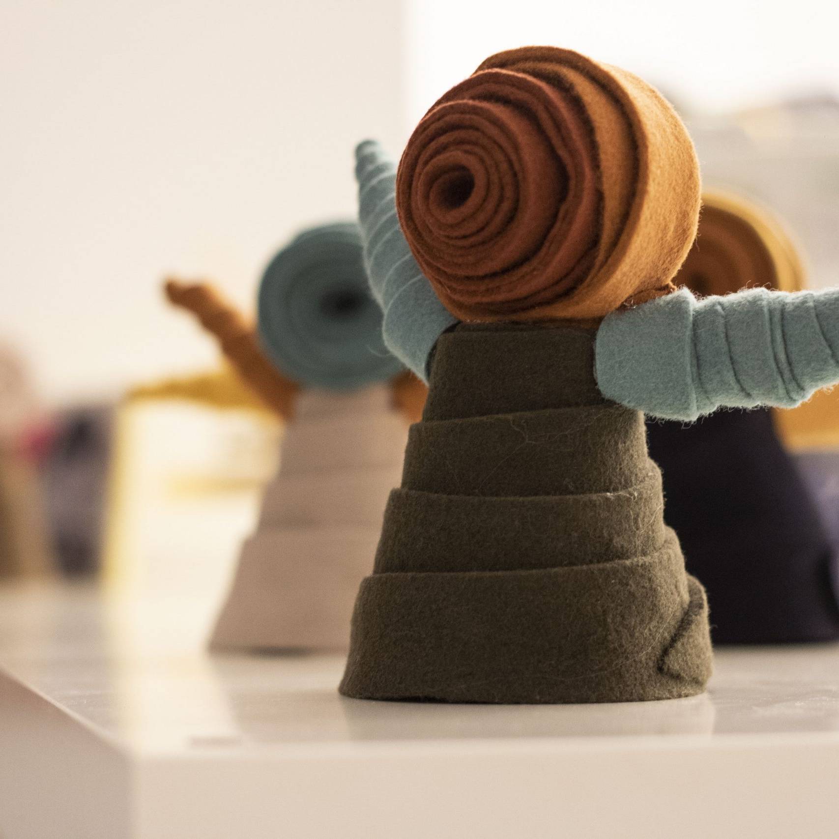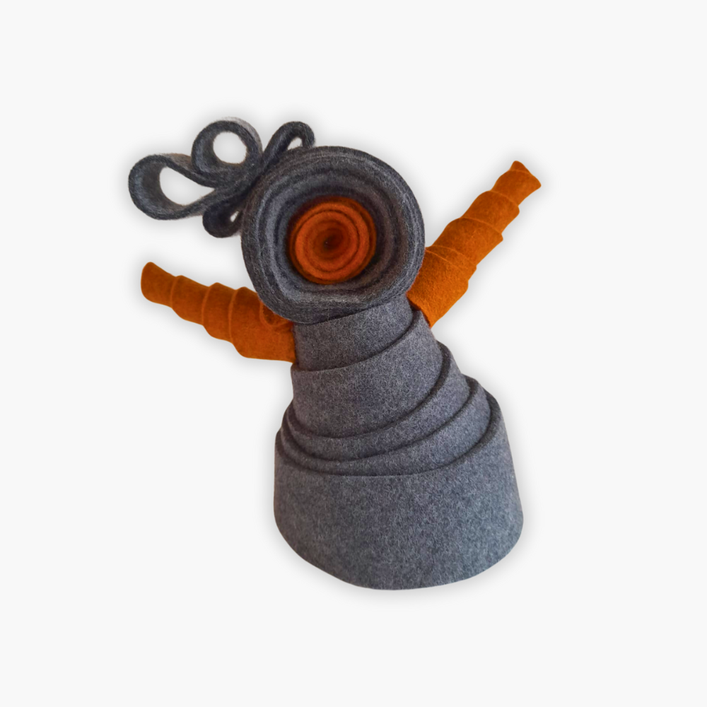 Ogni pezzo è una storia unica, plasmata dalla forma naturale del feltro recuperato. Cone, Round e Flow: solo tre interpretazioni dello stesso viaggio, dalla produzione industriale al design sostenibile
